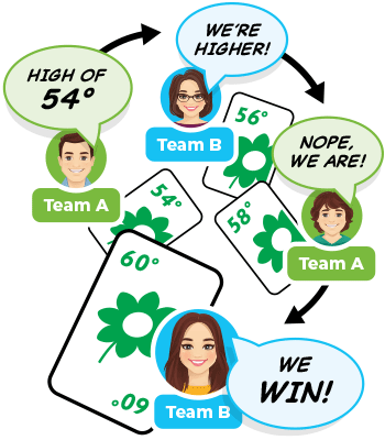 Play Summer cards to steal books and take back control from the other team in a race to 100 points!