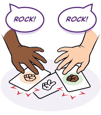 Quickly find a card in your hand that beats the last card played. Paper beats Rock. Scissors beats Paper. Rock beats Scissors.